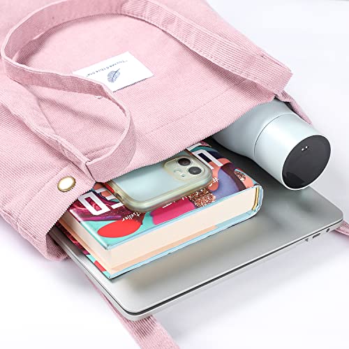 Etercycle Borsa a tracolla in velluto a coste, borsa per la spesa in velluto a coste, borsa a tracolla casual di grande capacità per le donne, rosa, L, Totes