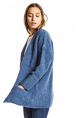 ETERKNITY - Cardigan Lungho per Donna in Misto Lana Morbida, Blu, M