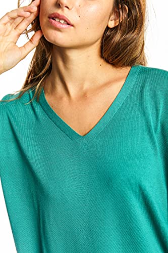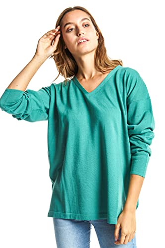 ETERKNITY - Maglia Oversize Scollo a V in Lana Merino per Donna, Verde Muschio, L