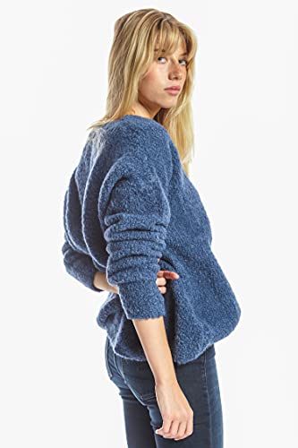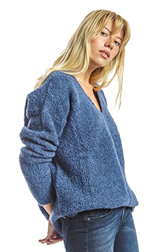 ETERKNITY - Maglione Donna Ampio con Scollo a V in Misto Lana Morbida, Blu, S