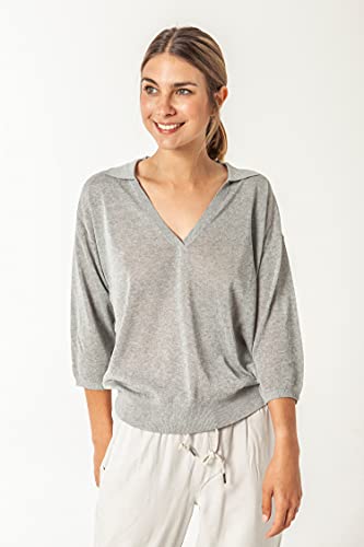 ETERKNITY - Maglione Sottile Dona a Scollo Polo in Viscosa Sostenibile, Grigio mélange, M