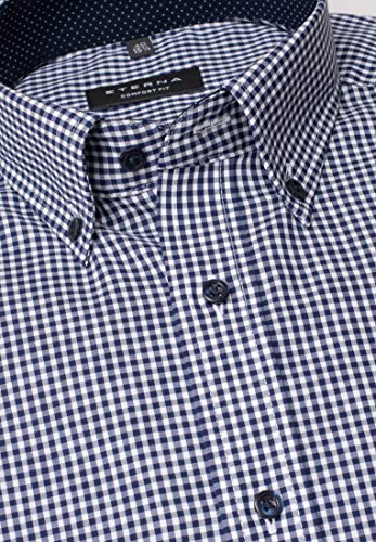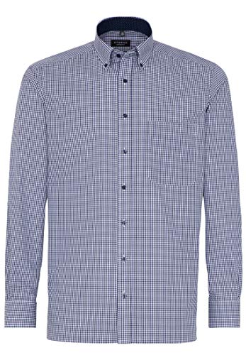 ETERNA Comfort Fit camicia a maniche lunghe Button Down colletto con patch polsini sportivi con toppa tasca sul petto in puro cotone senza stiratura a quadri azzurro