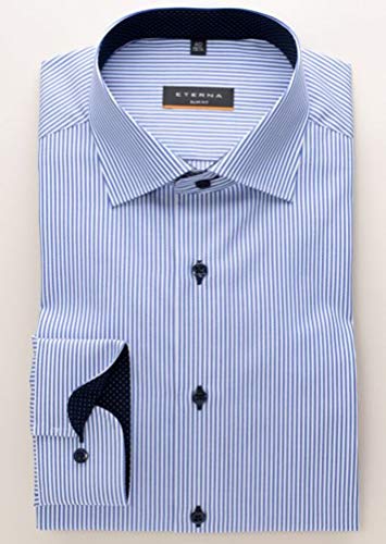Eterna Uomo fine Stripe Twill Shirt Slim Fit 1/1 Blue 40_H_1/1