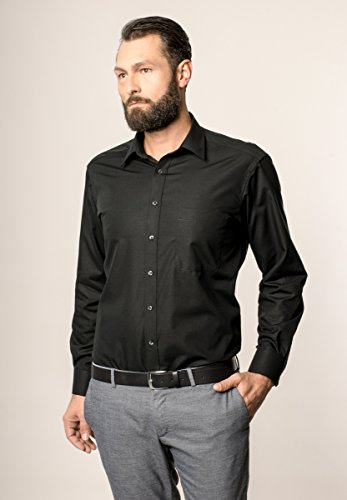 Eterna Uomo Plain Poplin Shirt Comfort Fit 1/1 Black 42_H_1/1
