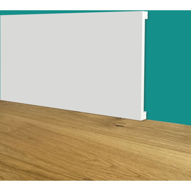 Battiscopa SQUADRATO BIANCO Passacavo 100x10x2000mm in POLIMERI - Polistrutturato 10cm di altezza - 1cm di spessore - lunghezza asta intera 2 metri (prezzo al metro non ad asta) € 4,49 al metro lineare iva inclusa ATTENZIONE! Il prezzo è al metro lineare, nel carrello vanno inseriti tanti oggetti quanti sono i metri lineari da ordinare, il battiscopa arriverà in aste intere, l'ultima asta sarà tagliata al raggiungimento dei metri ordinati. I nostri Battiscopa In DUROPOLIMERO sono prodotti indicati per tutti quegli ambienti che hanno bisogno di qualcosa di molto resistente agli urti, praticamente inscalfibili sono indicati nel completamento di boiserie e come coordinato su porte o pareti in tinta in quanto laccabili o smaltabili con comunissimo quarzo o pittura lavabile, facili da posare e da tagliare, leggeri e completamente asettici, totalmente sopraverniciabili e stuccabili. Il POLISTRUTTURATO (o Duropolimero) è un materiale leggerissimo che non soffre alcun tipo di umidità, non