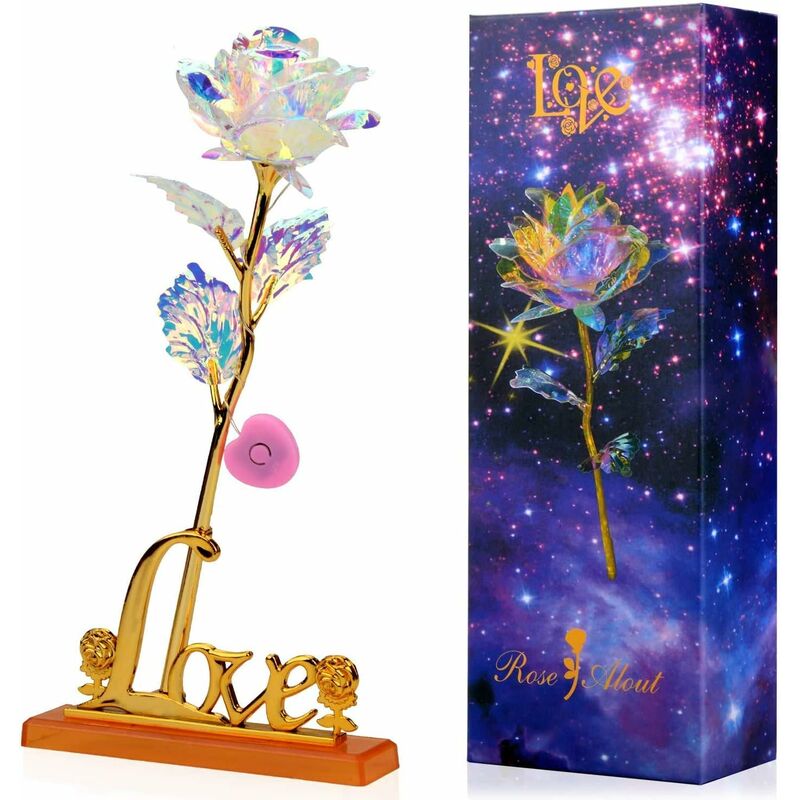 Regalo romantico di San Valentino - : Rose arcobaleno 24k, le lettere "Amore" sulla foglia d'oro, che simboleggiano i sentimenti eterni. Questo è il regalo perfetto che può essere mantenuto per sempre, può essere usato come oggetto di raccolta o per la decorazione della casa. [Materiale di alta qualità]: La rosa è fatta di foglia d'oro di alta qualità. È fatto a mano per garantire la forma originale della rosa. Ha una lunga base e una buona decorazione del tavolo. Formato: L * w * h: 8 * 8 * 24 cm (3.15 * 3,15 * 9,45 pollici) [Pacchetto regalo]: Ogni rosa è accuratamente imballata per garantire che gli oggetti fragili non siano danneggiati. Confezione in squisiti scatole regalo per migliorare la qualità dei regali e dei regali. Puoi usarlo direttamente come regalo. [con l'illuminazione]: Con ghirlande a LED, tre impostazioni di illuminazione, per aggiungere un'atmosfera romantica ai tuoi regali di Natale. Il regalo perfetto per un amante o una donna per esprimere la sua fiducia in