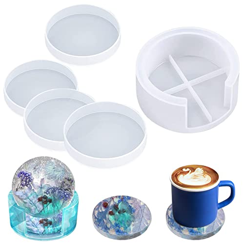 Design creativo: con 4 stampi in resina rotondi e 1 stampo in resina con supporto per sottobicchiere, il sottobicchiere può essere riposto nello stampo in resina rotondo quando non è in uso, il che è molto conveniente.