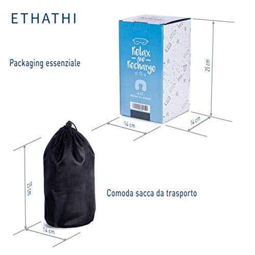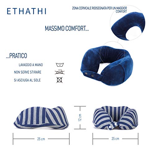 Ethathi Cuscino da Viaggio Memory Foam -1 Notte a Bergamo - Cuscino da Viaggio per Cervicale per Aereo e Campeggio - Cuscino da Lettura per Divano e per Smart Working- Kit Accessori da Viaggio