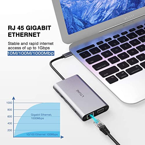 Hub USB C Ethernet -11 in 1,docking station usb c con HDMI 4K, VGA Doppio Display,2 USB 3.0,2 USB 2.0, Lector SD/TF, Trasferimento Dati USB-C Adattatore macbook air, iPad, Chromecast, Windows, Switch
