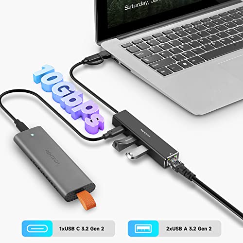 Hub USB 3.2 Ethernet, RSHTECH Hub USB 3.1 Gen2 con Porta 3 * 10Gbps (2*Typ-A&1*Typ-C) e Adattatore di Rete Gigabit Ethernet RJ45, Hub Ethernet in Alluminio Compatibile USB 3.0/2.0, RSH-ST310