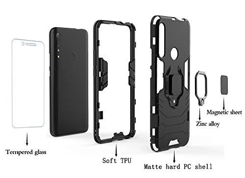 Ethika DESCHE per Cover Huawei P Smart Z, Cover per Staffa Dell'anello + Vetro Temperato, Compatibile con Supporto Magnetico per Auto - Rosso