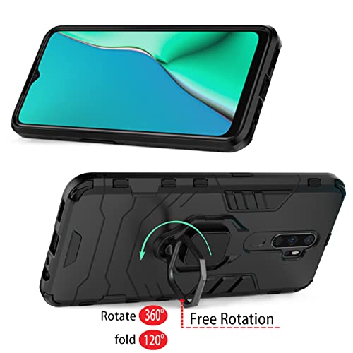 Ethika DESCHE per Cover Oppo A9 2020 / A5 2020 Case Cover per Staffa dell'anello + Vetro Temperato, Compatibile con Supporto Magnetico per Auto - Nero