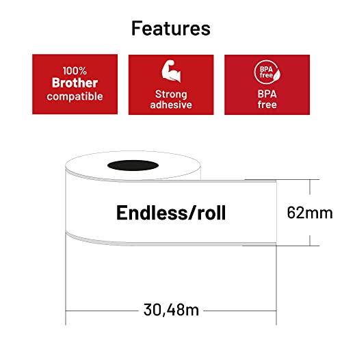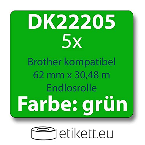 5x Etichetta compatibile con Brother DK22205 62 mm x 30,48 m continua +1x supporto riutilizzabile