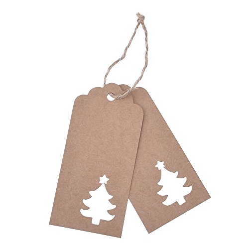 Etichetta Kraft Carta di Regalo Tag Cava dell'Albero di Natale Design 100 Pezzi con 66 Piedi Iuta Spaghi per Natale e Favore di Nozze