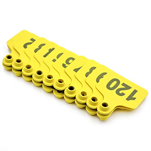 M.Z.A Etichetta Orecchio bovino Etichetta Orecchio in plastica per Animale Mucca Capra ovina con Numero 001-100 (Giallo)