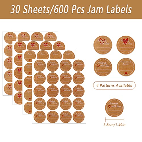 Quantità sufficiente: La confezione include 30 fogli di etichette per barattoli di marmellata, ogni foglio ha 4 adesivi per marmellata in diversi design, totalmente 600 adesivi. Una quantità sufficiente e uno spazio di scrittura più spazioso sono sufficienti per creare etichette adesive regalo da forno e etichette regalo di compleanno di nozze.