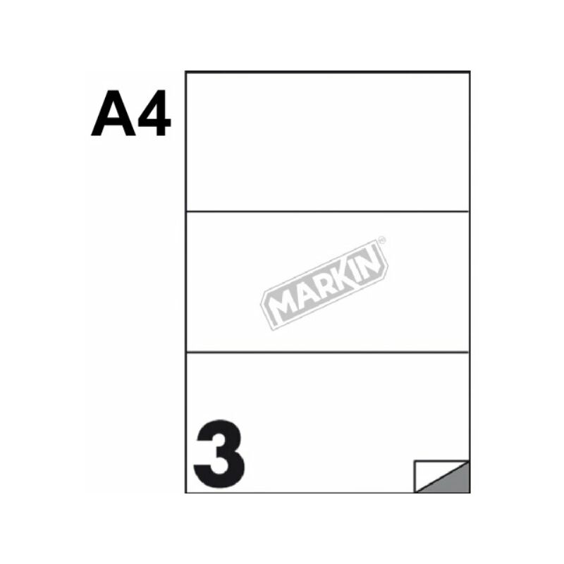 Etichette adesive Markin 210x99 mm, 3 etichette / foglio, 100 fogli - X210C520 ATTENZIONE: SE IN FOTO O NEL TITOLO VIENE VISUALIZZATO UN ASSORTIMENTO O ESPOSITORE, IL PREZZO FA RIFERIMENTO AL SINGOLO PEZZO E NON ALLA CONFEZIONE. NOTA SUI TEMPI DI EVASIONE E SPEDIZIONE: ACQUISTANDO QUESTO PRODOTTO I TEMPI DI GESTIONE POSSONO ARRIVARE FINO A 10 GIORNI LAVORATIVI.