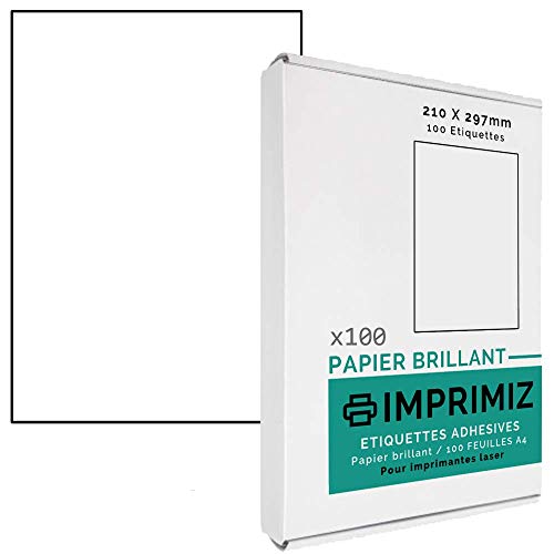 Etichette adesive multiuso A4-210 X 297 mm - Colore Bianca Lucida - 100 fogli - Per stampanti Laser