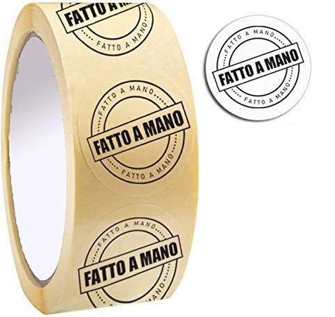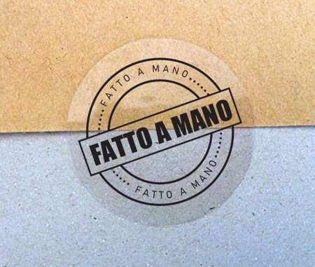 ETICHETTE ADESIVE TRASPARENTI CON SCRITTA FATTO A MANO, DIAMETRO 3CM, SUPER RESISTENTI, ARTIGIANATO, FAI DA TE (250 ETICHETTE)