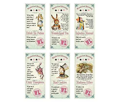 6 etichette autoadesive in vinile autoadesive Alice nel paese delle meraviglie in stile vintage Apothecary (piccole 3 x 7 cm)