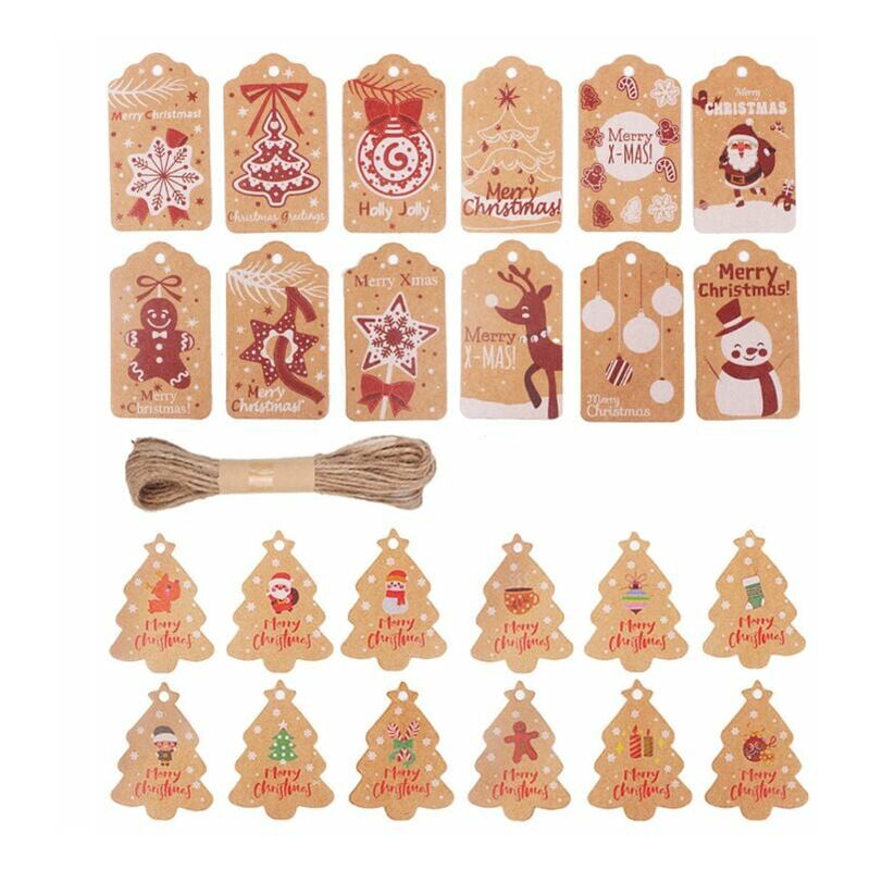 Etichette regalo di Natale con cordino - 48 pezzi di etichette regalo di Natale in 24 stili come immagini, ogni stile ha 2 pezzi. Viene fornito con filo di cotone naturale resistente e filo di iuta naturale. Le etichette regalo natalizie in carta kraft in stile classico aggiungono gioia all'atmosfera del festival natalizio 【Materiale di alta qualità】 Il materiale delle etichette natalizie è carta kraft di alta qualità, facile da pulire, scrivere e non facile da rompere;