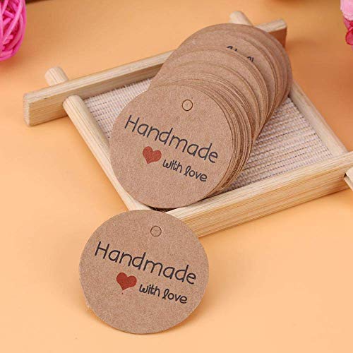 Etichette in carta Kraft per regali, ideali per decorazioni fai da te, 100 pezzi Fatto a mano con amore.
