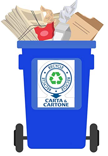 6 etichette 141x110mm: Carta Cartone, Plastica, Plastica Metalli, Vetro, Rifiuti organici, Indifferenziata