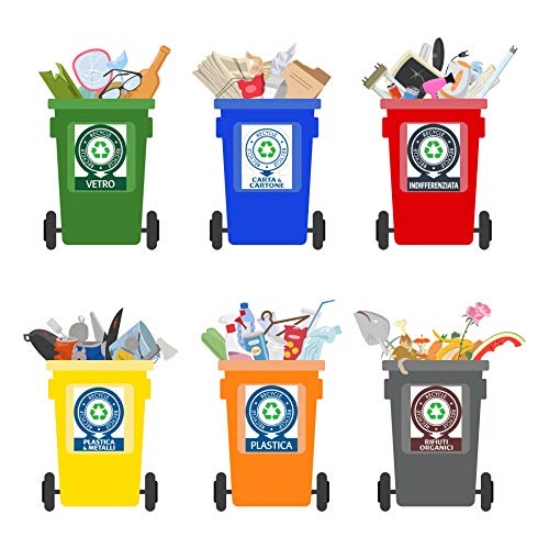 Kit completo di 6 etichette per l'identificazione dei contenitori dei rifiuti