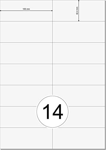 100 fogli di carta autoadesiva bianca DIN A4 - 2 x 7/7 x 2 per foglio/etichette DIN A4 - totale 1400 etichette 105 x 42,4 mm da personalizzare, scrivere o stampare e incollare