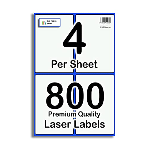 800 Etichette - Etichette Laser Adesive Bianche per A4 Stampante 4 per Foglio | A6 Stampante Adesiva 4 Etichette di Indirizzo per Foglio A4 per Tutti i Tipi di Stampante A4