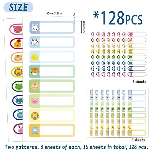 2. Set di Adesivi Nome: Un totale di 128 adesivi sono distribuiti su 16 fogli, ogni foglio contiene 8 adesivi, dimensioni 60x15 mm. Simpatici adesivi animali, coniglio, pollo, tigre, maiale, leone, rana. . .
