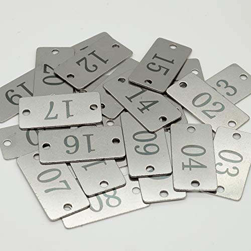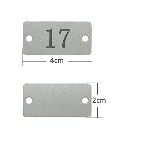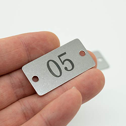 Etichette numerate rettangolari in acciaio inox con due fori (1-50)