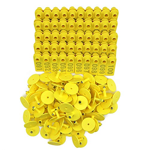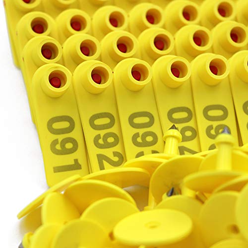M.Z.A - Etichette per orecchie numerate per capre, maiali, maiali, maiali, mucche, bovini, vitelli, vitelli, allevamenti gialli, in TPU (giallo)