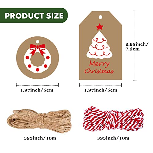 La confezione include: 100 pezzi di 10 diversi modelli di etichette regalo di Natale, ciascuna con 10 pezzi, più 10 m un rotolo di corda rossa e bianca e 10 m un rotolo di corda di iuta naturale. Ideale per la decorazione di confezioni regalo.