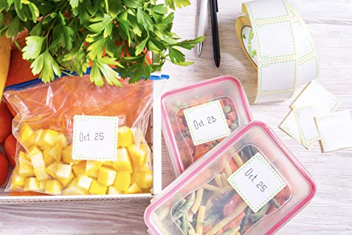 500 x Etichette rimovibili in rotolo, formato 50x50mm quadrato, bianco e verde Etichette della data Uso per contenitori riutilizzabili