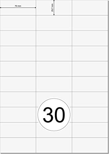 70 x 29,7 mm, stampabili, bianchi, facili da staccare dal supporto, adesivo permanente, bianco da stampare - Etichetta/etichetta.
