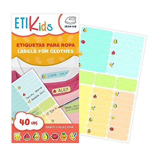 ETIKids 40 Etichette Vestiti Termoadesive da STIRARE. Formati e colori vari, per contrassegnare indumenti, vestiti dei bambini a scuola ed asilo. (Fruits)