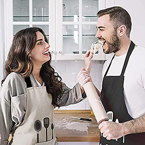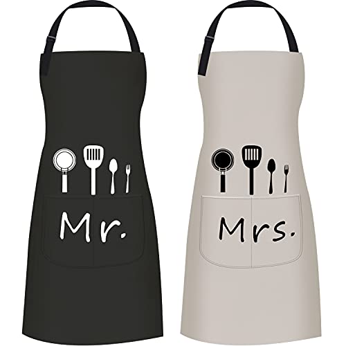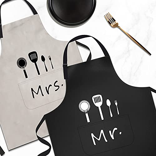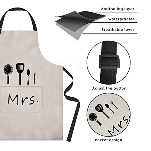 ETLEE Mr. and Mrs. Grembiule da cucina regolabile, bavaglino impermeabile con tasche per matrimonio, festa nuziale (beige e nero lungo)