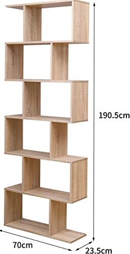 {Pratica ed elegante} - Dimensione 70 × 23.5 × 190.5cm, peso 17kg. Libreria a giorno colore rovere, scaffale con 6 ripiani robusti, semplice e moderna, adatta per qualsiasi ambiente ed arredamento.