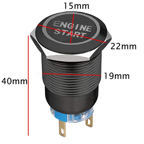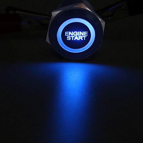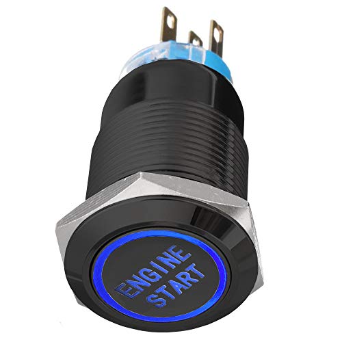 ETOPARS Nero Guscio 12V Auto Luce Blu LED Pulsante di Avviamento in Metallo 19mm Interruttore a levetta Momentaneo Accensione Engine Start
