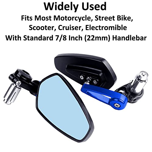 ETOPARS Specchietti Retrovisori Moto da 22mm 7/8" Pollici Specchietto Moto Manubrio Alluminio Specchi Retrovisori Laterale Blu Antiriflesso Convesso Specchio Blu