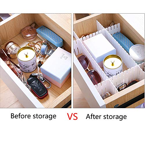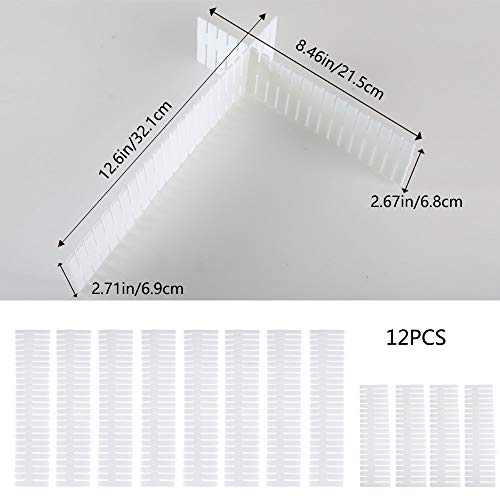 Diverse misure: il kit contiene 12 divisori, 8 pezzi sono 32,1 * 6,9 cm / 12,6 * 2,71 pollici, 4 pezzi sono 21,5 * 6,8 cm / 8,46 * 2,67 pollici, diverse dimensioni per ottenere più varietà La combinazione è più adatta al tuo cassetto.