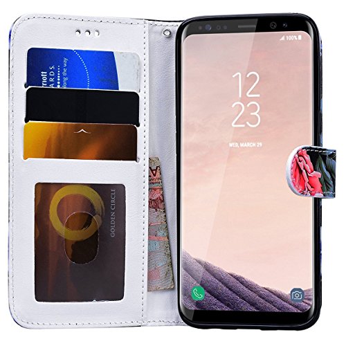 Etsue Case Cover for Samsung Galaxy S8,Copertura in Pelle/Leather Cover caso,Nice Impressione tattile Embossing Varnish Pattern Leather Wallet Case [Chiusura magnetica][assorbimento dello shock][anti-graffio] flip cover case for Samsung Galaxy S8-Fiori di peonia