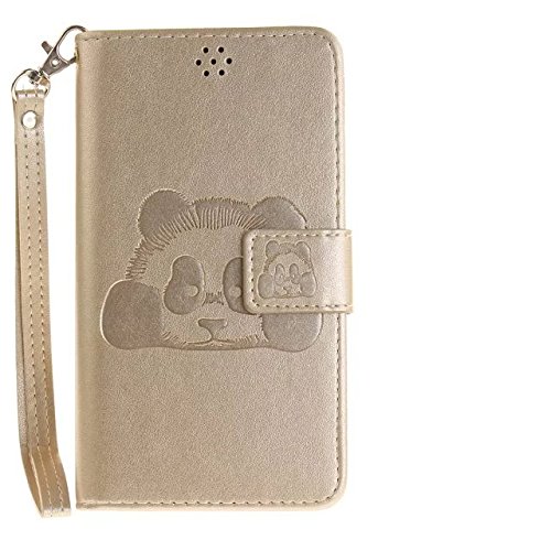 Etsue Custodia per Sony Xperia X Performance, ultra sottile caso di cuoio in forma Con la cinghia, in foglio del basamento di vibrazione dell'unità di elaborazione simpatico puro caso del panda modello libro con magnetico Chiusura e slot per schede di funzione+Blu Pennino e scintillio di Bling Diamond Dust Plug colora Casuale