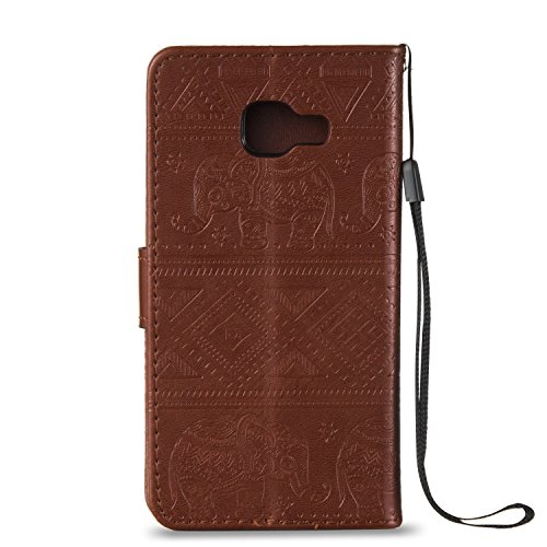 Etsue Samsung Galaxy A3 2016 Cover Portafoglio Con Corda,Samsung Galaxy A3 2016 Custodia Bella,Carina Vintage Modello Elefante Puro Pu Libro Case Flip Wallet Cover in Pelle Con Magnetico Chiusura e Slot per Schede Protettiva Corpeture Case Cover per Samsung Galaxy A3 2016+Blu Pennino e scintillio di Bling Diamond Dust Plug colora Casuale-Marrone/Elephant