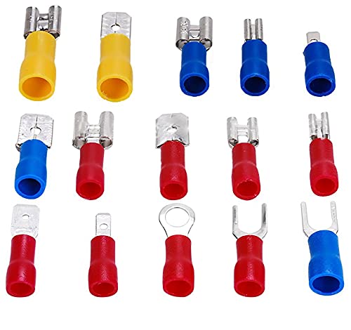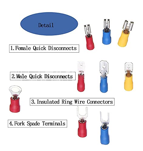 Pratico: riceverete 280 capicorda tra cui 15 diversi capicorda. Questi includono connettori ad anello, connettori rotondi, boccole tonde, connettori piatti, boccole piatti, connettori termoretraibili e connettori (rosso, blu e giallo).