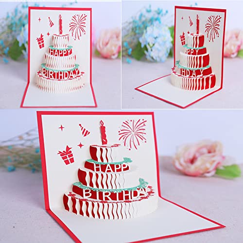 ETUKOAN Biglietto d'auguri pop-up con busta, 3D Biglietti Augurali Compleanno con design tridimensionale della torta e candele, per Famiglia, Bambini, Amici, Buon Xompleanno, Anniversario