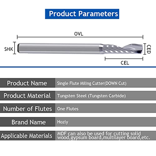 EU_HOZLY 10 frese a spirale Singola Flute Down Cut 1/8 pollici con diametro di taglio 2 mm (0,078 pollici) (0,472 pollici) lunghezza di taglio 12 mm per piastra in legno e acrilico alluminio plastica