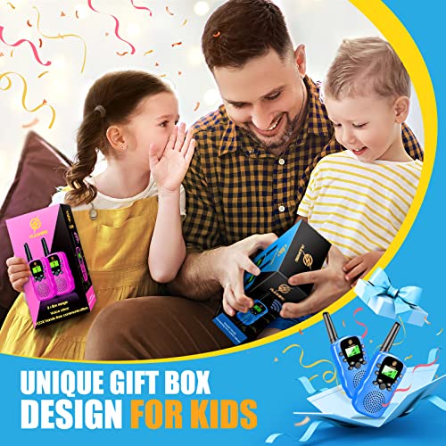 Walkie-talkie a lunga distanza: i walkie-talkie sono dotati di 3+ KM di distanza , 8 canali, anche la conversazione a lunga distanza in luogo aperto è molto chiara. È molto utile nell'avventura all'aperto di tuo figlio.