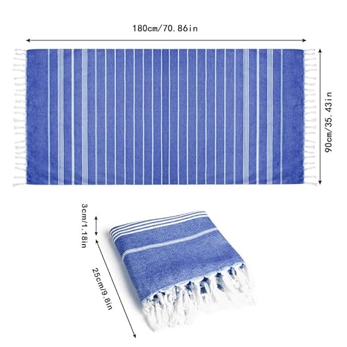 Asciugatura rapida: l'asciugamano si asciuga rapidamente, il materiale in cotone, ampio e leggero, la dimensione del telo mare turco è 90 * 180 cm, che è abbastanza grande da coprire il corpo, ma c'è meno spazio occupato nella borsa. È comodo da trasportare senza spazio. Può essere utilizzato come telo mare multifunzionale come asciugamani da bagno, da spiaggia, SPA, fitness, yoga e da viaggio.